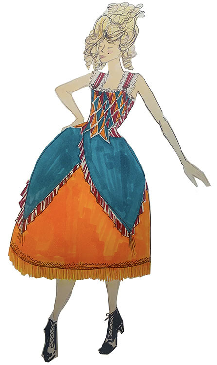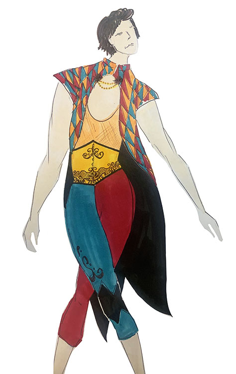 A lifelong sewer, Bianca is most inspired by costume-making’s storytelling and character-driven focus. Her Arlecchino designs capture the production’s colourful, flamboyant energy, with each costume expressing individuality while connecting seamlessly to the show’s vibrant visual world.